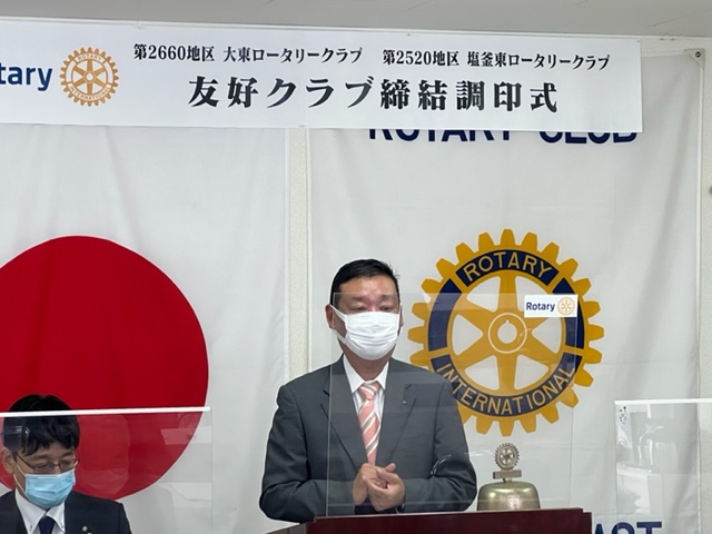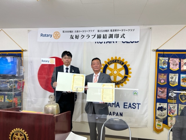 東日本復興支援事業から生まれた塩釜東RC様との友好クラブ関係。 9月28日(水)に、友好クラブ協定書更新締結で塩釜東RC様の例会にお伺いさせて頂きました。 2012年に執り行った、台北市雙溪扶輪社様との共同支援事業「なのはなまる」も地域の為に活躍している様子を伺う事が出来ました。 また例会後には塩釜東RC様に松島をご案内頂き、帰路に至るまで有意義な時間を過ごせました。 塩釜東RCの皆様、大変お世話になりありがとうございました。