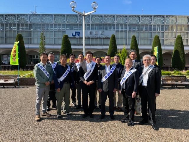 四條畷警察署管内で春の全国交通安全運動 早朝街頭キャンペーンがJR住道駅前デッキにて開催され、大東ロータリークラブから13名が参加しました。