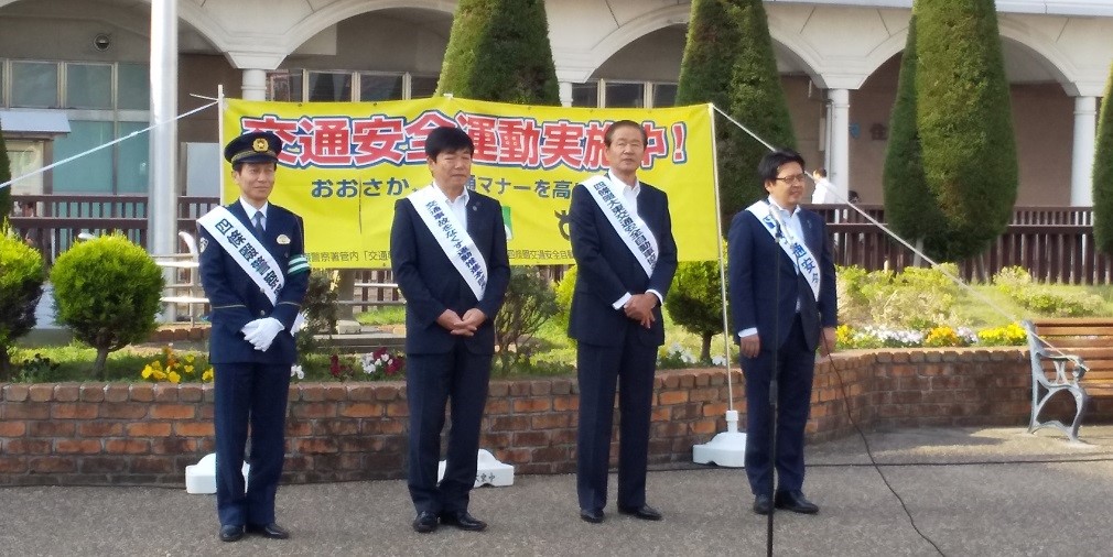 5月10日(金)午前7時45分より住道駅前デッキにおいて交通安全運動のキャンペ-ンが行われました。当クラブから会長はじめ十数名の参加をいただきありがとうございました。