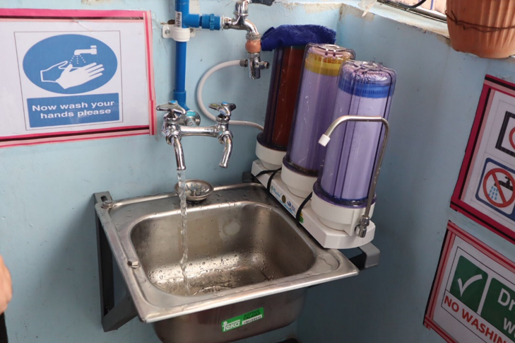 今回のプロジェクトは「安全で清潔な飲料水の持続的確保」と「感染症予防のための清潔な水洗トイレのインフラ整備」です。対象となったピネダ小学校にはおよそ1600名の子供たちが通っています。6階建ての校舎全フロアには飲料水が供給されていませんでした。今回のプロジェクトでは地下水をくみ上げるポンプ及び貯水タンクと浄水設備を設置した上で給水用蛇口までのインフラを整えています。これにより、これまで小学校が飲料用として定期購入していた飲料水費用の節約と安定した供給が可能となりました。