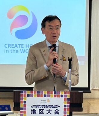 ガバナー方針として、RACにポリオ根絶に向けたイベントを依頼してます。ロータリーファミリーも協働します。SNS発信して若い人の共感を募り公共イメージ向上に繋げたいと思います。10月22日(日)にYOLO BASEにて開催。イベント名はEND POLIO NOW チャリティ ハロウィンパーティーです。ご支援、ご協力をお願いいたします。若い人、若いアイデア、考え、価値観を多様に取り入れ、若い人にリーダーとしての機会を提供する。ロータリアンが若い人たちをインクルーシブに受け入れる。このイベントが、特に年齢という観点から当地区におけるDEI推進のきっかけになればいいと思っています。マイロータリーの登録をお願いします。アップデートな情報、ロータリアンとして必要な情報をマイロータリーから得て今後の活動に活かしてください。100万人以上の会員を有するロータリーです。マイロータリーを通して世界の人と繋がってください。会員の積極性を促しクラブ活性化を図りましょう。地区内全クラブのロータリー賞受賞を目指します。ご協力ください。地区ビジョンには、若きリーダー育成を謡っています。ライラセミナーは、若い人々の中にある指導者としての資質を啓発するとともに、青少年としての知識と技術向上を目的としたプログラムです。皆様方のお知り合いをライラセミナーに参加してもらい、ロータリー精神をもった若きリーダー育成に一役買ってください。宜しくお願いいたします。大阪・関西万博関連事業実行委員会は、国内外のロータリアンとの交流・情報交換の機会を提供するため、当地区内のクラブに、地区ナイト、フェローシップ拡大例会の開催をお願いしています。他にも、地区内ロータリアン経営の飲食店や小売店、宿泊・観光施設を紹介するグルメマップを作成し、来店したロータリアンに特別サービスを提供する企画も計画中です。ご協力、ご参加をお願いいたします。私たちロータリアンは「世界を変える行動人」です。自信と誇りを胸に、希望を生み出し、希望あふれる1年にいたしましょう。