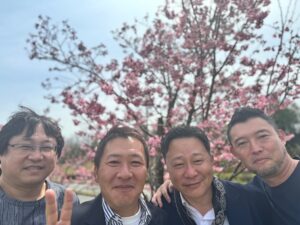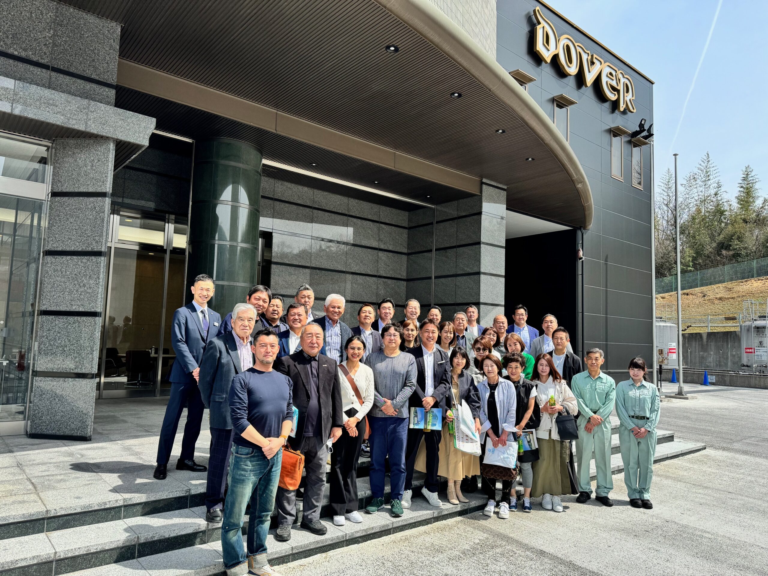 4月2日(火)に日帰りで春の家族会を行いました。朝8時に住道駅を出発し、兵庫県三田市に向かいました。まずはドーバー酒造株式会社様で工場見学を行いました。一般には公開をされていない工場でしたので皆様大変ご興味を持たれ、洋酒やリキュールの事はもちろん、建物の建築様式や物流システムについても真剣に見学をされておりました。その後は桜を見ながら散策をする予定でしたが、今季は残念ながら桜の開花が遅く、満開という訳にはいきませんでした。しかしながら寒緋桜や若干咲き始めたソメイヨシノの前で皆様、笑顔で記念写真を撮られていました。その後、昼食会場の三田バーベキューガーデンズに移動しました。こちらのお店はオーナーが食材等にこだわりをお持ちのところで、なおかつ、食べ方にもこだわりがあり、まずは原木から栽培したシイタケを特製の塩で頂き、その後、国産牛、三田ポーク、名古屋コーチンを特製塩とたれで頂きました。有馬富士を臨む、自然豊かなロケーションで皆様、和気藹々と食事とお酒を楽しんでおられました。その後は全国でも有数の有名店、パティスリーエスコヤマに立ちより、お菓子を購入し、その後めんたいパークでもたくさんのお土産をご購入されていました。最後は山垣畜産さんで東村会長お勧めのコロッケとメンチカツを皆様大量にご購入されておりました。皆様和気藹々と楽しんで頂けたご様子で大変有り難く存じます。ご参加頂きました皆様ありがとうございました。
