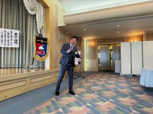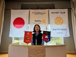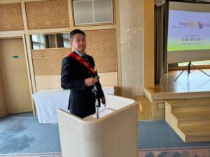 皆様、こんにちは。今年は、桜の開花が遅れていて、今週末あたりが最後の桜の見ごろだと思います、よい時期に合同例会を開催でき嬉しく思います。又先週4月3日におきました台湾東部沖で起きた地震に際し、被災されました方々にお悔やみ見舞いを申し上げ、一日も早い復興をお祈りを申し上げたいと思います。先ほど、例会前の4月理事会で台北雙溪扶輪社を経由して義捐金をすることを承認頂きましたので、早い段階で内容を決めて義捐金の支援をしていこうと思います。メンバーの皆様、よろしくお願いいたします。さて、2023-24年度の大東RCの第56代会長を務めています。東村正剛です。早いもので入会して17年になりました。どうぞよろしくお願いいたします。米山奨学生の紹介 マイさん、クインさん、そして元米山奨学生のサイさんようこそ例会へ。後程それぞれ報告お願いします。そして、燦々会では、いつも青田会長・岩本幹事にはお世話になり、ありがとうございます。