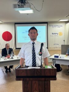 皆さんこんにちは。2週間ぶりの例会ですが、この間、世の中では、イスラエルの問題をはじめ、連日値動きの激しい日経平均株価や、急速な円高、など目まぐるしい動きをみせております。この速さにただただ驚くばかりです。
