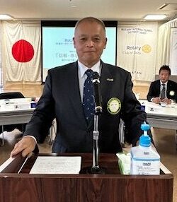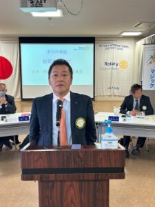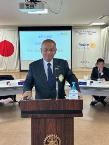 11月16~17日はWCS事業「能登の子供たちに笑顔を」では、子供たちの明るい嬉しそうな笑顔を見るとこちらが元気を頂いた気がしました。と同時に能登の復興はまだまだであることを忘れてはいけないと感じました。WCS事業について森脇国際奉仕委員長、大変ご苦労様でした。また11月23日はキラリエホールにて開催されました『薬物乱用防止対話集会in大東市パートIII』へ参加して参りました。寄り添うことやの否定をしない言葉、安心できる場所の大切さについて考えさせられました。 11月29~30日とリーガロイヤルホテル大阪及び大阪国際会議場におきまして2024-25年度2660地区大会が開催されました。分科会での講演、晩餐会での歌の美声と美食の堪能、また2660地区ロータリアン同士の懇親など非常に有意義な時間を過ごせました。本会議の石川勝氏の基調講演では55年ぶりの大阪国際万博が楽しくなるような話が聞けました。