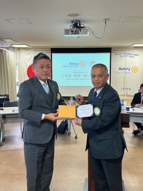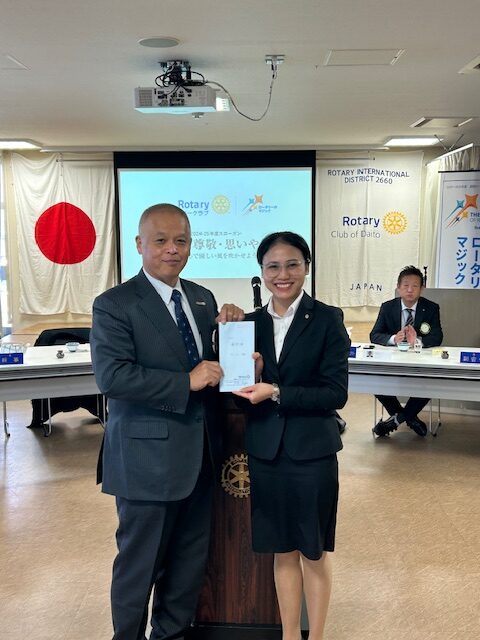 さて7月からを振り返ってみますと、初めての例会では、開会点鐘のゴングを失敗し、非常に締まりのないスタートとなってしまいましたことをまずはお詫び申し上げます。活動としては7月4日大東市立子ども発達支援センターの夏祭りへの訪問から始まりました。そして7月7日KKRホテル大阪にてのロータリー米山記念奨学生学友会2024~25年度総会及び新規奨学生歓迎会へ参加し、1952年に事業が始まって以来、現在は民間奨学金としては国内最大となっているという事で70年以上続く素晴らしい事業であることを再確認いたしました。岡井米山奨学委員長、田川カウンセラーには 米山奨学生のグエンティマイさんのサポート誠にありがとうございます。