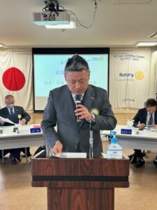 また同好会におきましては谷中ゴルフ同好会キャプテンには毎回配慮いただいたゴルフ場選びから、その後の親睦会まで、本当にありがとうございます。非常に楽しい時間をみんなが過ごせていると実感いたしております。また東村グルメ同好会キャプテンにも、本当に素晴らしい設営をしていただき、また私の還暦のお祝いまでしていただき、感謝に堪えません。本当にありがとうございます。また例会におきましても森田SAAには例会の進行を、広報委員会の岸沢会員には不慣れながらも懸命にSNSを活用した広報活動を、ニコニコ箱におきましては中野剛会員には皆さんの相談に回答いただき、また樋本会員には軽快なタクト裁きを、ありがとうございます。