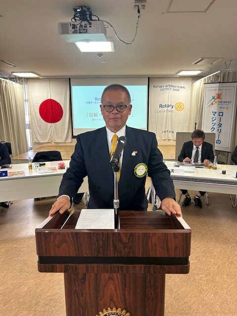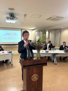今年も残り半分、例会はもとより情報集会や春の家族会をはじめ、事業の方も、まだまだございます。また今年は55年ぶりの大阪国際万博博覧会開催の年であり、ロータリークラブといたしましても4月12日の前夜祭や5月10日のエキスポフェスタなど開催されます。また前夜祭では姉妹クラブの台北スワンシーRCより4名の会員と3名の奥様が来られます。当クラブといたしましてもしっかりエスコート致さなければならないものと思います。これらの残された下半期の事業をひとつひとつ真剣に取り組み、次年度、杉原年度へ引き継ぐのも役目のひとつであると思っております。皆様におかれましては、ご協力のほど宜しくお願い申し上げます。