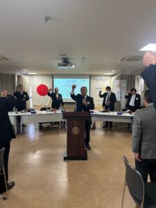 皆様方におかれましては、ご家族お揃いで爽やかな新年を迎えられお慶び申し上げます。本日の2025年初例会にメンバー皆様の元気なお顔を拝見し安心いたしました。昨夜は日向灘を震源とするマグニチュード6.9の地震が発生し、南海トラフ地震への懸念もございましたが、幸い巨大地震の可能性は高まっていないとのことでした。ですが昨年の8月に続きの発生という事なので、平時より備えが必要であろうかと思います。