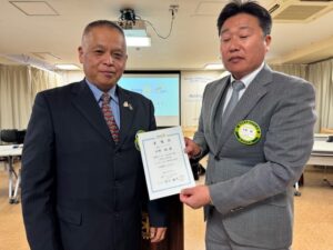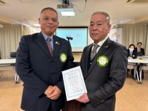 さて先日1月31日には大東市役所におきまして大東市逢坂市長より大東市立野崎保育所遊具寄贈に際しての感謝状を拝受いたしました。当日は前回の例会における卓話についての御礼も申し上げて参りました。