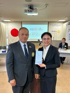 米山奨学生のグエンティマイさんが例会に来られ、奨学金が手渡されました。