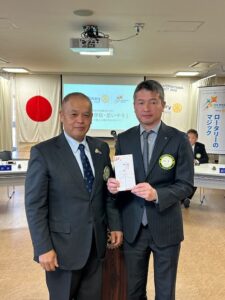 70年の歴史のある米山奨学金制度を含めロータリークラブの活動の積み重ねにより、未来には国際平和の創造と維持に貢献できる米山奨学生学友会をはじめとする平和を愛する人々が多く増え、温かい心で優しい風を世界に吹かせてくれる日が来ることを信じたいと思います。それでは本日の例会もよろしくお願い致しまして会長の時間と致します。