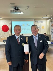 皆さんこんにちは。本日は岡田ガバナー補佐にお越しいただいております。岡田ガバナー補佐よろしくお願いいたします。また本日の卓話に藤田平様にお越しいただいております。当クラブの会員の皆さんも毎年恒例となっているこの卓話を楽しみにしております。藤田様本日は宜しくお願い申し上げます。