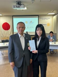 米山奨学生のグエンティトムさんが例会に来られました。会長から奨学金が手渡されました。