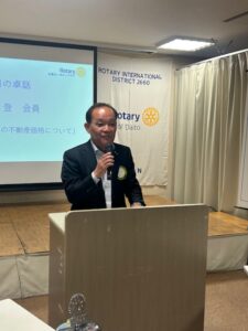 さて本日の会長の時間はインターアクトクラブ時代のお客様がいらっしゃる中でのインターアクトクラブの話題で何か縁なるのもを感じますが、先日の6月1日はインターアクトクラブの新入生歓迎会が大阪桐蔭中学高等学校で開催されました。当クラブの提唱校という事で私も歓迎のご挨拶をさせて頂きました。新入生歓迎会では、「手話教室・ボッチャ体験を通してインターアクターの輪を広げよう」というテーマのもと、大変意義深い時間となりました。詳しくは後ほど委員会報告があると思いますが佐藤地区インターアクト委員長からの挨拶では新入生にとってインターアクトクラブの意義を深く理解する貴重な機会となったと思います。今回の新入生歓迎会の体験を通して、新入生の皆さんがこれからの活動に自信と誇りを持ち、インターアクトの精神を広げていくことを期待しています。