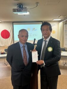 本日は第2220地区ガバナー事務局の栗正様、元大阪桐蔭中学高等学校インターアクトクラブ顧問でいらっしゃった今井奈保子様、大東RCの例会へお越し頂いております。誠にありがとうございます。昨年の東村会長の時と同じく地区インターアクトクラブ以来のご縁です。栗正様には本当にお世話になりました。当時の思い出が色々甦ってまいります。また今井様におかれましては日本熊森教会大阪支部長という事でございます。山歩きを趣味とする私、ここ数年の熊が山で人を襲ったり、人里に出没するなどの熊被害など、人と熊の共生に危機感を感じている一人であります。いち早い共生についての対策がなされることを祈ります。