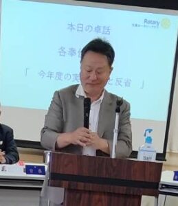 本日から卓話は各奉仕委員長の今年度の実績報告と反省となりますが、それを考えるといよいよゴールも見えてきたのかなと思います。
