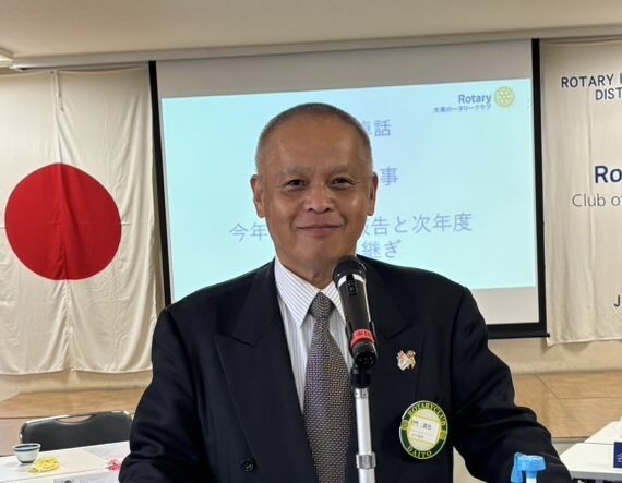皆さま、こんにちは。 本日をもちまして、本年度のすべての例会と事業が終了となり、私の「会長の時間」も今回が最後となります。長かったようで、終わってみればあっという間の一年でした。 振り返れば、この一年は、国内外ともに大きな変化を感じる年でした。地震や異常気象をはじめとする自然災害の連続、ウクライナ・ガザ・スーダンなど、戦火の絶えない国々の情勢に加え、イスラエルのイラン空爆によるアメリカを巻き込んだ緊張状態、幸い本日のニュースでは停戦合意される模様で一安心ではありましたが。さらにアメリカの関税問題を含む経済や環境、ジェンダー、AIに至るまで、社会の枠組みが大きく揺らぐ中、私たちロータリアンもまた、「何のために、誰のために、どう行動するのか」が問われる時代になってきたように思います。 2024-25年度RI会長ステファニー・アーチック氏は、「私たちはかつてないほどポリオ根絶に近づいているが、だからといって手を休めることはできない」と語り、「ロータリーは孤独が蔓延する世界に友情と帰属意識をもたらす場所だ」と強調されました。この言葉は、私たちが日々行ってきた例会や奉仕活動、そして何より「会員同士のつながり」に重なるものです。120年続いてきたロータリーの精神は、実は最も時代に必要とされているのではないかと感じます。