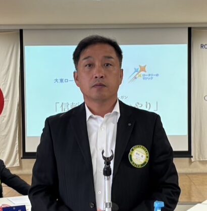 本年度、私は「信頼・尊敬・思いやり」温かい心で優しい風を吹かせよう!とスローガンを掲げさせていただきました。 メンバー同士が信頼し、尊び、敬い、お互いを思いやる気持ちを持つことによって、クラブ全体に温かい空気が作られ、より良い親睦と奉仕活動につながるものだと考えたからです。そしてその先には、出会いと学び、そして笑いと感動がある、先輩諸兄が育んでこられた持続可能な魅力あふれるクラブであり続けることに繋がり会員拡大、退会防止にも繋がると考えたからです。 本年度スタートには誠に残念ながら敬愛する岡本日出士先輩が、引き際という自らの信念のもと退会されることとなりましたが、新しい仲間として田中睦久君が入会されました。ひとつひとつの発言や行動がクラブに明るい空気をもたらしてくれ、これからの親睦および奉仕活動においても非常に楽しみな会員であります。次年度以降も引き続きよろしくお願いいたしたいと思います。 また各委員長におかれましては、それぞれの役割をしっかり務めていただき本当に感謝申し上げます。例会においても、各事業においても微笑ましい、優しい空気の中、進んできたと思います。