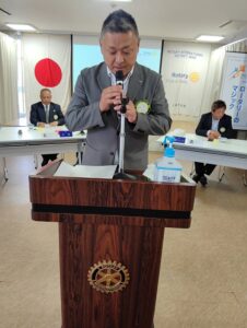 青少年奉仕の事業におきましては第45回大東ロータリークラブ旗争奪軟式少年野球大会では始球式をなげさせていただきましたが、大暴投、本当に恥ずかしい限りです。キャッチャーミットに収める事の難しさを痛感致しました。 中野隆二幹事には私の年齢60を背番号にしたユニフォームをプレゼントしていただき、本当に感謝申し上げます。開会式におきましては、大会に向けての厳しい練習を乗り越えた時間は非常に貴重であること、そして野球ができる環境を支えてくれている方々への感謝の気持ちを大事にしてほしいと挨拶させていただきました。11月に開催されました第19回大東市小中学生弁論大会では初めて審査に参加させていただき、どの弁論も良かったので大東ロータリークラブ会長賞の選考は非常に頭を悩ませました。選考させていただいた2作品はどちらも優しさと、感謝の気持ちの大切さが伝わり、暖かな気持ちになれました。谷中青少年奉仕委員長ご苦労様でした。またゴルフ同好会キャプテンとしても、会員相互の親睦を図るためにゴルフ後の食事会の設営を頂くなど重ねて感謝申し上げます。 国際奉仕委員長の森脇委員長にはWCS事業「能登の子供たちに笑顔を」におきまして非常に貴重な時間を過ごさせていただきありがとうございました。枚方市立地域活性化センターたまゆらイベントホール、そしてひらかたパークでの子供たちの明るい嬉しそうな笑顔は非常に良い事業であったことと実感させてくれました。 そして大阪関西万博博覧会におきましては、姉妹クラブである台北雙溪ロータリークラブとの連絡、企画、設営と非常に大変だったことと思います。おかげをもちまして更なる親睦を図れたことと思います。また、お手伝いいただきました会員の皆様にも重ねて感謝申し上げます。
