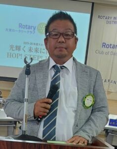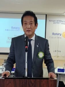 私たちロータリアンの使命は奉仕の理念を持って、世界・地域社会へ持続的に「よいこと」をし続けていくためには、母体となるクラブ環境を省み、会員相互の信頼を深め、信頼が団結力へと繋がる魅力あるクラブへと成長し、ロータリー活動において最も大切な財産である会員拡大へと繋がっていくものと考えます。また本年度は13年振りに第2660地区IM3組ガバナー補佐として佐藤多加志会員には多大な重責を担って頂くこととなります。ガバナー補佐セクレタリーチームを発足し、ガバナー補佐が主催します燦々会(会長幹事会)、また、フレッシュロータリアンのホストクラブとして企画運営をして頂くことになります。存分なご活躍が発揮できるようクラブメンバー皆様のご支援をよろしくお願い致します。今一度、クラブメンバー皆様が、ロータリー(人として)の行動規範である「四つのテスト」と照らし合わせながら行動して頂くことにより、会員相互の信頼が更に深まり、クラブ発展の礎を築き未来につながって行くものと確信しています。57年間もの長きに渡り、築き上げられた歴史と伝統ある大東ロータリークラブの1ページ(1年)の物語を皆様と作り上げたいと思っております。会長職をお受けするにあたり光栄かつ恩義と感謝を抱き、その責務を全うしていく所存でございます。会員諸兄のご理解とお力添えをお願い申し上げます。