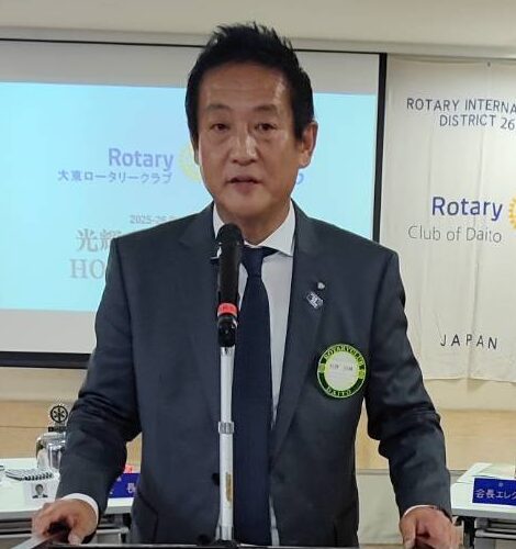 2025年4月、55年ぶりの「大阪・関西万博」が盛大に開幕し、『いのち輝く未来社会のデザイン』をテーマに掲げる万博として、世界が一つの「場」に集い交わる機会となります。この大阪の地に、世界の多種多様な文化や価値観が交じり合い、新たなつながりや創造を生み出し、世界的な危機を乗り越え一人一人のいのちを守り、いのちの在り方、生き方を見つめ直す機会となり、「未来への希望を世界に示す万博」となることを目指されています。ここに私たち『ロータリーの目的』と、この万博の理念とを重ね合わせてみることができるのではないでしょうか。『ロータリーの目的』とは、意義ある事業の基礎として奉仕の理念を奨励し、これを育むことにある。と記されています。(大東ロータリークラブ定款第5条)