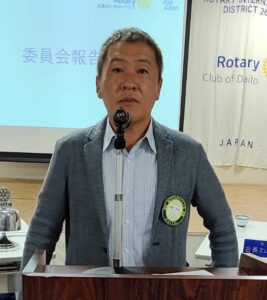また今月は特別月間として「ロータリーの友月間」となっており、こちらは日本独自の月間であります。それに伴い、本日は田中広報委員長の卓話でございます。宜しくお願い致します。