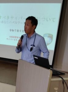 大阪府警察本部警務部、サイバーセキュリティ対策課警部補 大西 勇紀様より、サイバー犯罪についてのお話をしていただきました。