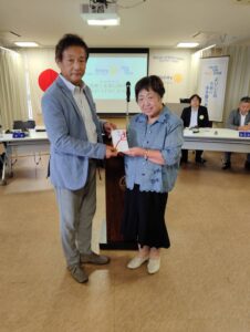 薬物乱用防止対話集会 IN 大東市パートⅥへの協賛金が、大東市薬物乱用防止指導員の大内啓子様に手渡されました。